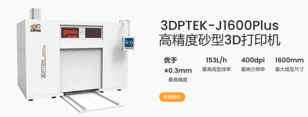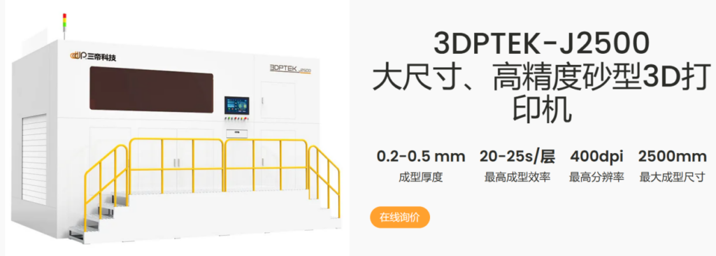 SANDI Tecnología 3DP de inyección de tinta de arena impresora 3D de tama?o de moldeo, alta eficiencia de impresión, arena de precisión y resistencia que el proceso tradicional, adecuado para gran tama?o, estructura compleja, peque?o y mediano lote de arena de fabricación rápida.