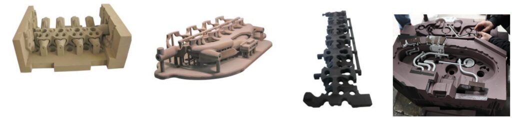 -Producción económica y eficiente de lotes peque?os de productos mediante impresión 3D o impresión 3D combinada con procesos tradicionales (molde exterior: molde metálico/molde de madera; núcleo de arena: impresión 3D).