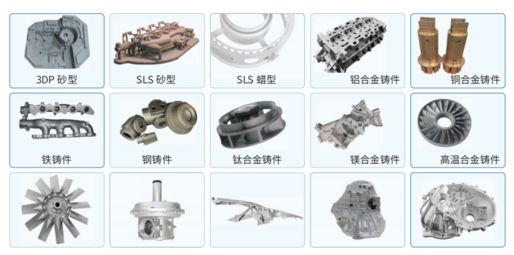 基于30 年的 3D 打印服務及鑄造經驗,三帝科技通過陜西咸陽、河北大名、河南平頂山、廣西玉林、山東日照、河南林州、安徽銅陵等地的3D鑄造工廠及打印服務中心,建立了全尺寸、多材料、全鏈路的快速制造服務能力,可為航空航天、電力能源、船舶泵閥、汽車、軌道交通、工程機械等領域的用戶提供鋁合金、銅合金、鑄鐵、鑄鋼、鎂合金、高溫合金、鈦合金等材質的金屬成品件快速研發試制和批量化生產,以及鑄造砂型、蠟型3D打印服務等。